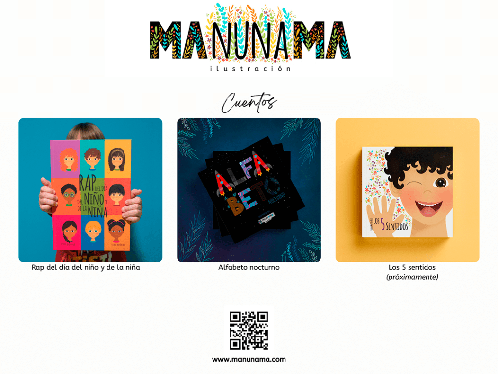 Como ilustradora y diseñadora gráfica, he creado la identidad corporativa de mi estudio, Manunama.